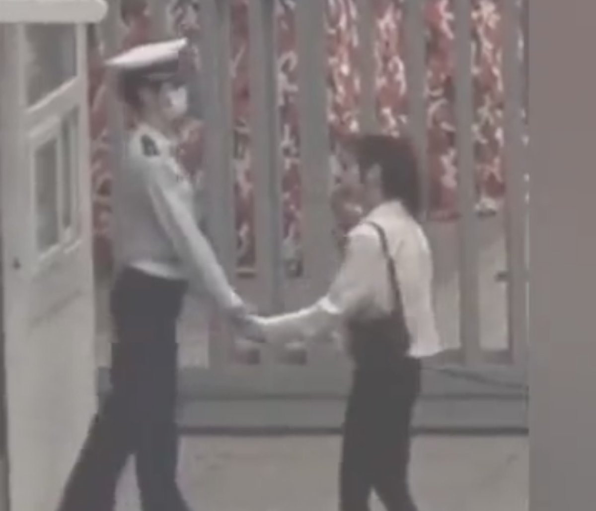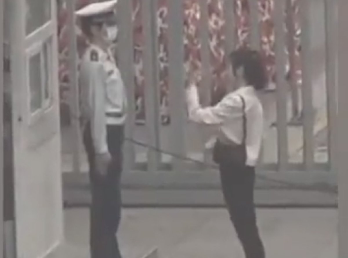 Erkek güvenlik görevlisi ise elini tutmaya çalışan sevgilisinden, geriye tek adım atarak uzaklaştı.