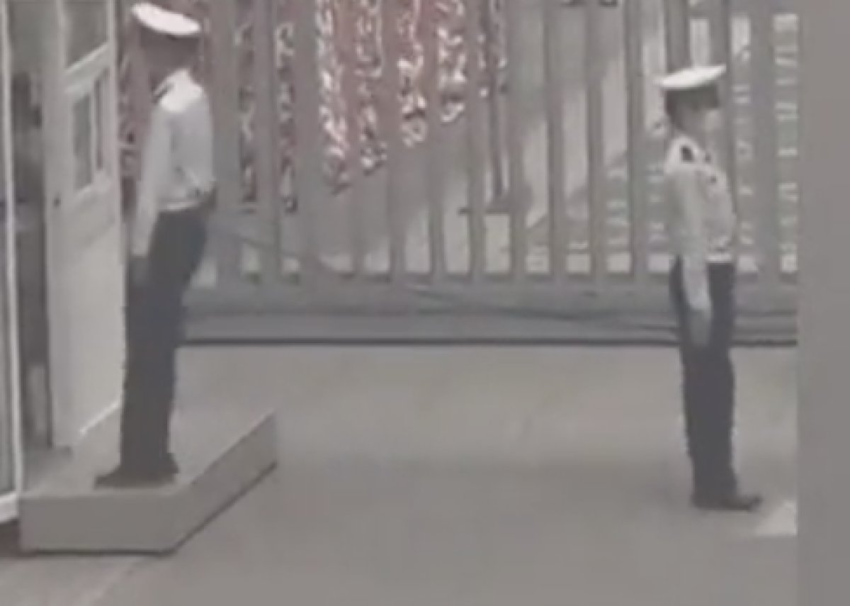 Bulunduğu yerdeki nöbette, kafasını bile çevirmemekle yükümlü olan kadının sevgilisi, nöbet değişimi sonrası sevgilisinin yanına gitti.