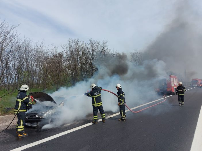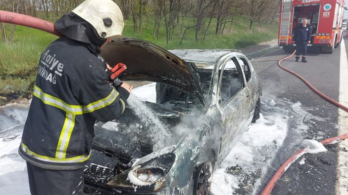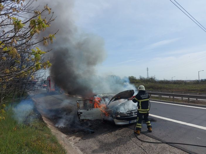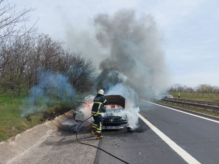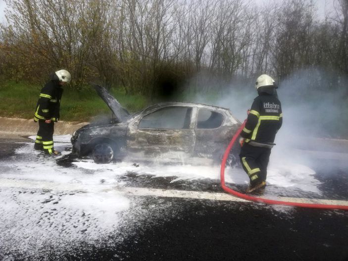Avrupa Otoyolu üzeri Ergene Velimeşe Mahallesi hudutlarında bulunan Çorlu Gişeler mevkiinde meydana gelen olayda, İstanbul’dan Çorlu istikametine seyreden Muhsin Görecek yönetimindeki arabanın motor kısmında yangın çıktı.