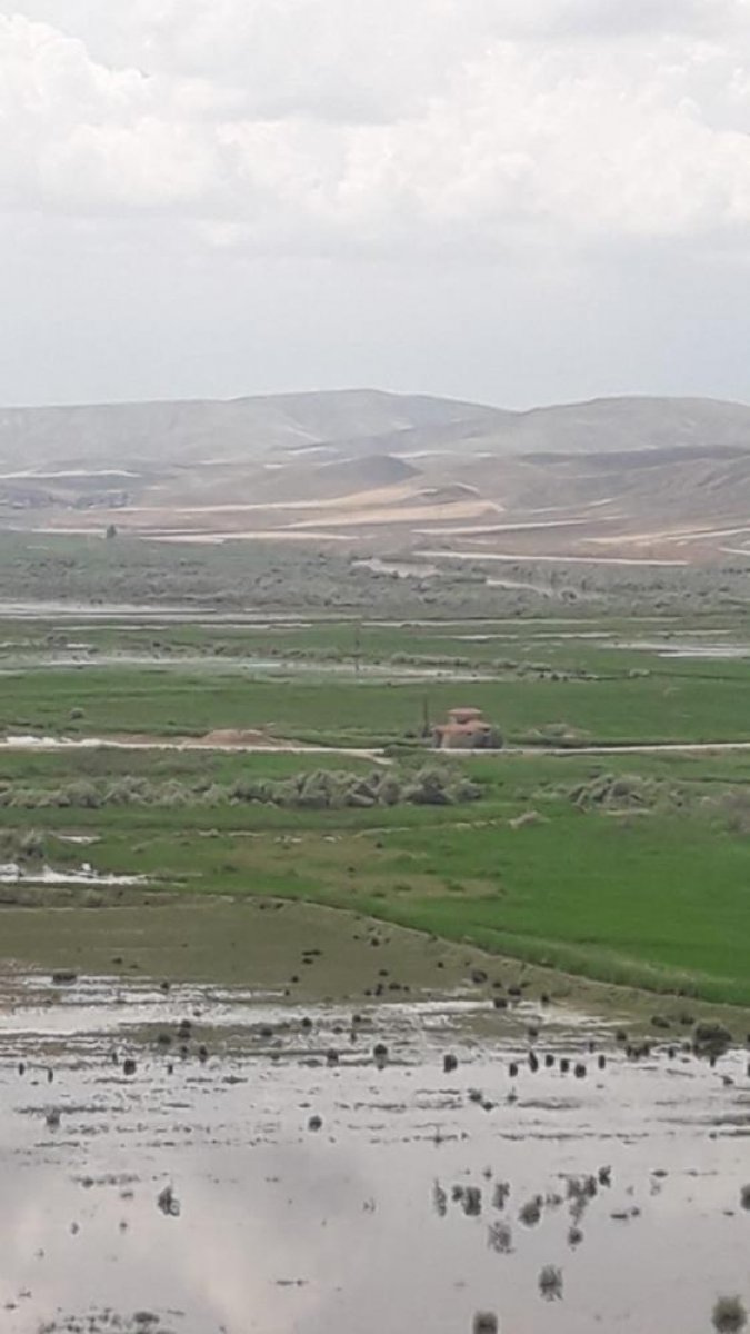 İHA’nın haberine göre; dün ve bugün yağan şiddetli yağmur nedeniyle yine arpa ve buğday ekili tarım arazilerine zarar verdi.