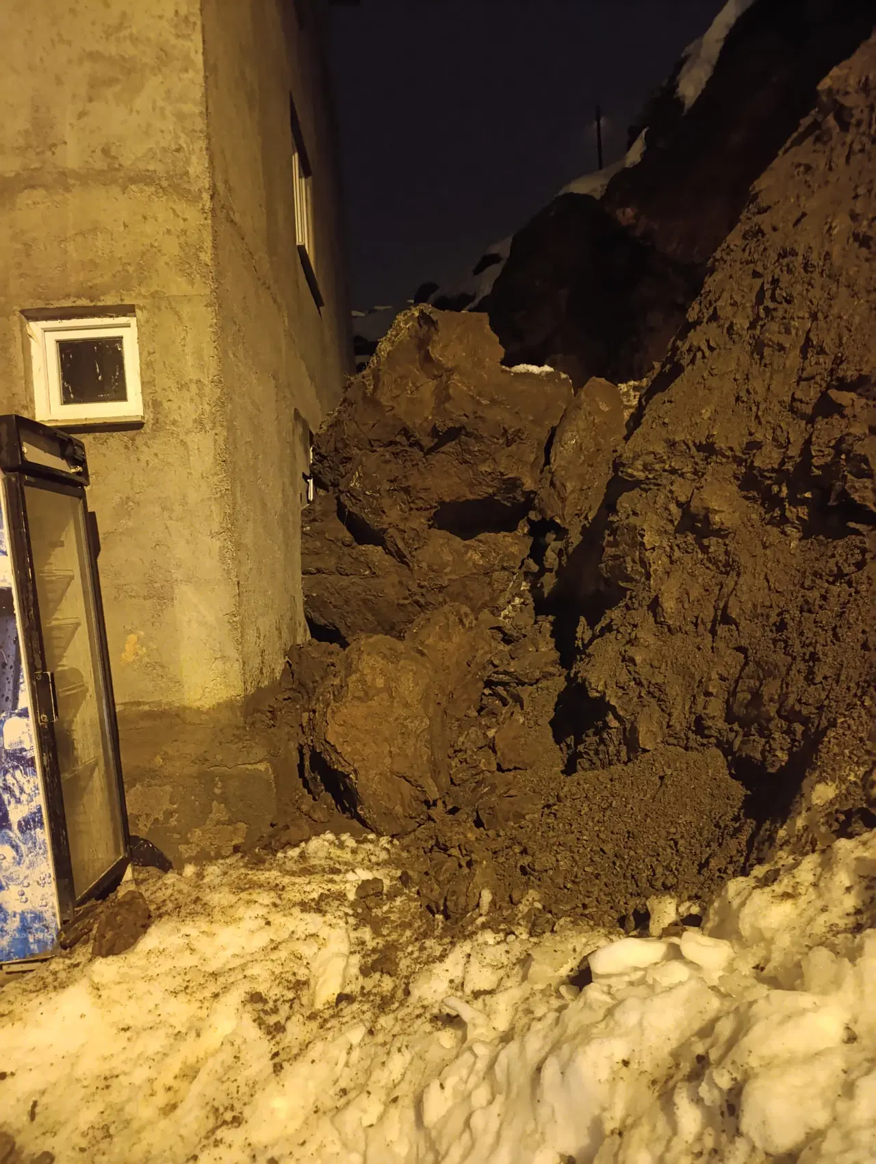 Evin arka duvarında büyük hasar oluşurken, kaya parçalarından biri yatak odasının duvarını deldi. Bu sırada evin salonunda oturanlar ise büyük korku ve panik yaşayarak kendilerini dışarı attı.