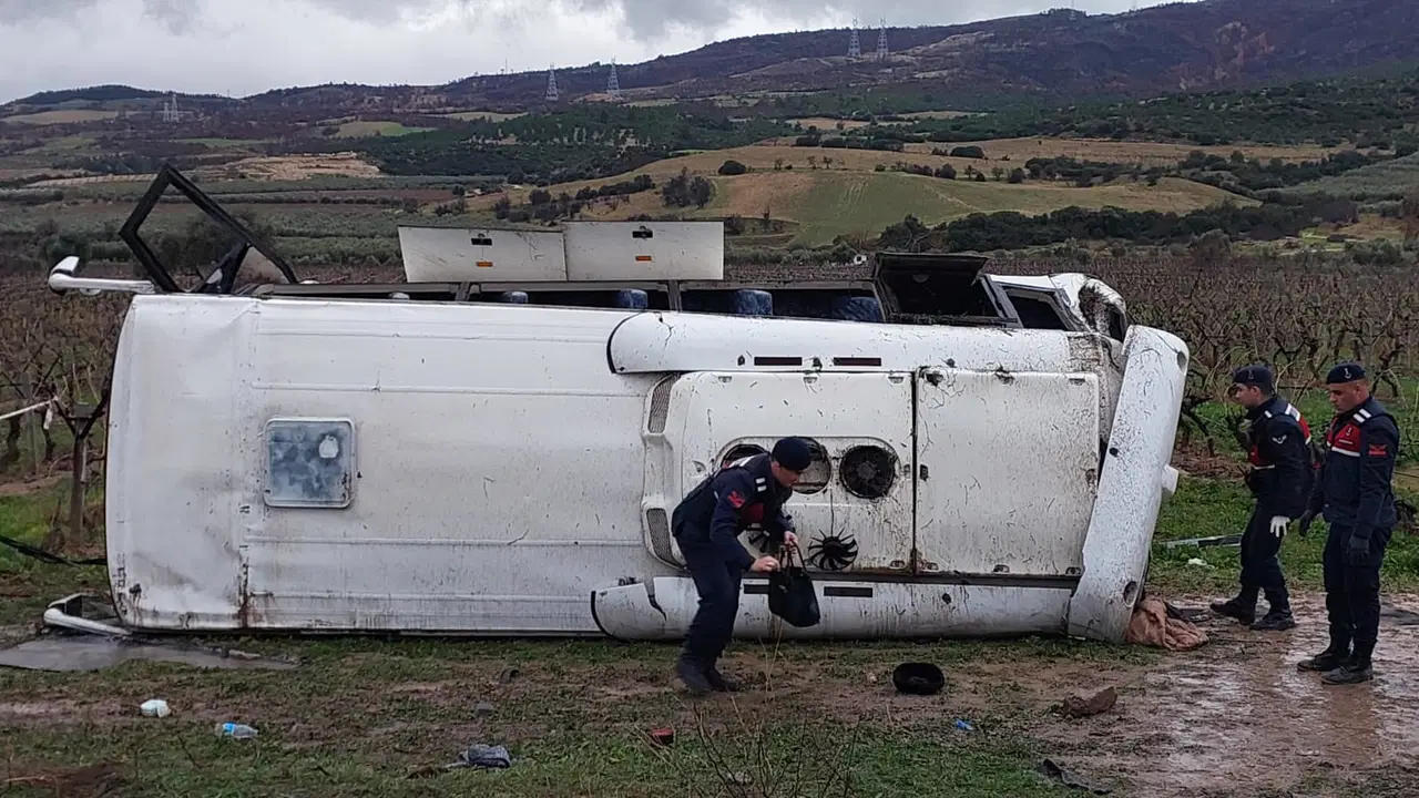 Sürücüsü ve plakası henüz öğrenilemeyen midibüs, Bölmekaya Mahallesi yakınlarında şarampole devrildi.