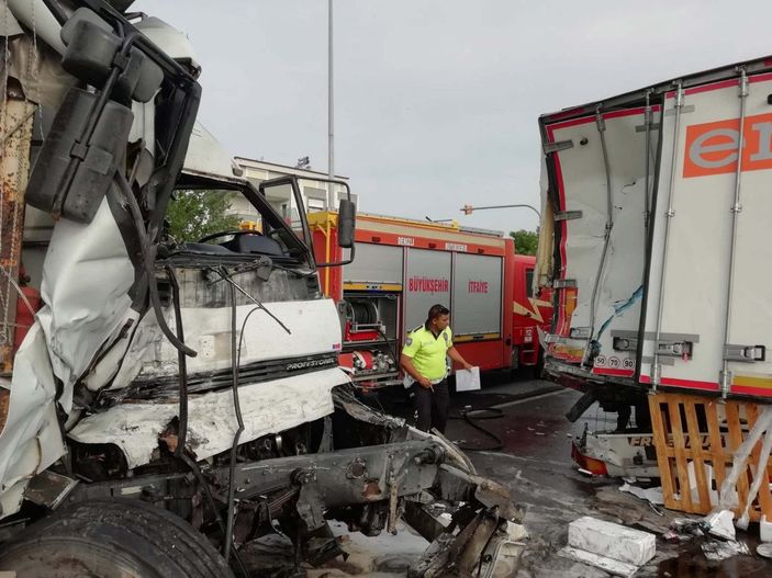 Kazanın akabinde Kadir Ülker idaresindeki 20 ZR 771 plakalı kamyon ise Akyol’un kullandığı TIR’a geriden çarptı.