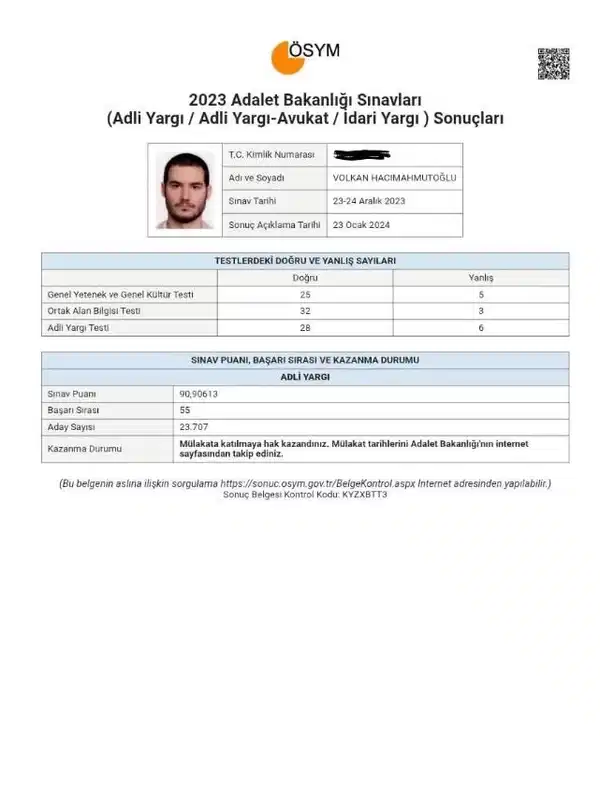 Hacımahmutoğlu, 2023’te girdiği sınavda 23.707 aday içinde 55’inci, 2024’te 20.762 aday içinde 108’inci, 2024’te Avukatlıktan Geçiş sınavında ise 4.446 aday içinde 11 inci olmuştu.Girdiği mülakatların hepsinde elenen genç avukat için Günaydın, “Gençlerin ah’ını alan adaletsiz Adalet Bakanlığı” ifadelerini kullanmıştı.