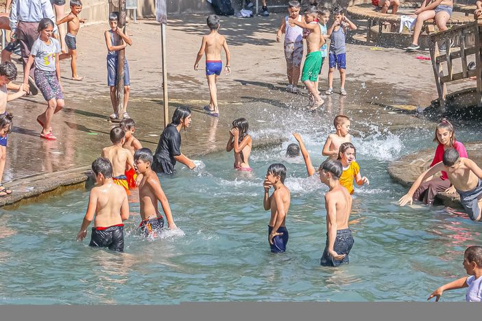 Sur ilçesindeki Anzele Parkı’na çocuklarını getiren Ferit Belli, “Dışarı çıksak bir türlü, evde kalsak bir türlü, en güzel burası. Çocuklar burada yüzerek hem serinliyor hem de eğleniyorlar. Bizim de çocukluğumuz burada, Anzele’de geçti, onlara özenmiyor değilim.” dedi.