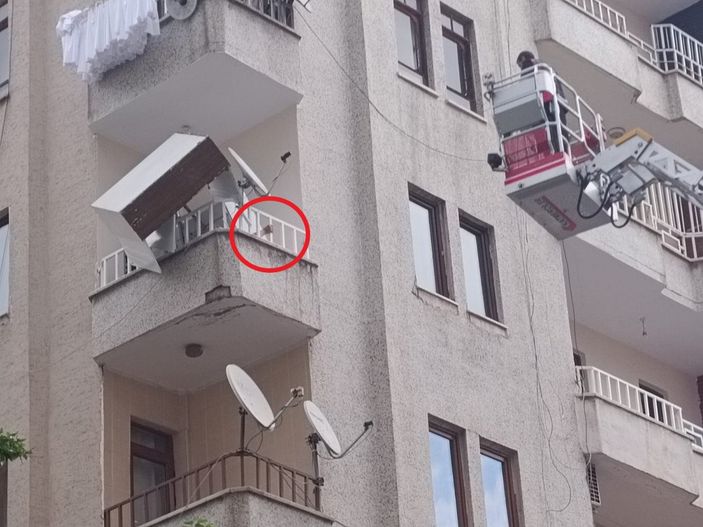Olay yerine gelen itfaiye takımları, merdiven yardımıyla 4’üncü kattaki balkona çıkarak Yeşil’i dolabın altından çıkardı ve sıhhat gruplarına de konutun kapısını açtı.