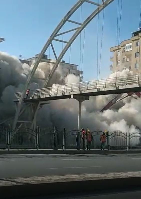 Bölgeye sevk edilen iş makineleriyle binanın yıkımına başladı. İş makinesiyle çalışma yapılırken bina, bir anda çöktü. Çökmeyle çevreyi toz bulutu kapladı. Kimse yaralanmazken, enkaz kaldırma çalışmasına başlandı. Bu anlar ise cep telefonu kamerasına anbean yansıdı. Dün kapatılan Diyarbakır-Şanlıurfa kara yolu da yine trafiğe açıldı.