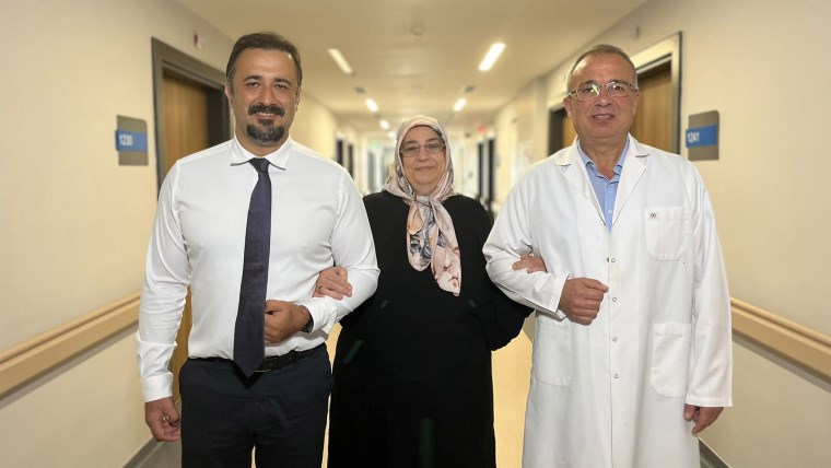 “Sol yumurtalığımda küçük bir kavun kadar kitleyle birlikte yumurtalığım alındı. 2003 yılında şikayetlerim tekrar başladı. Aslında rahatsızlıklarım olmasına rağmen hep bir bahane buldum. Küçük yaşta babamı, ondan sonra da annemi kaybettim. Kardeşlerimi ben büyüttüm. Annem 60 yaşında ölmüştü. Ben de gelmişim 58 yaşıma, bundan sonrası için hani ‘Ağaca çıksam pabucum yerde kalmaz’ denir ya. 3-4 gün koma haline geldim çok ağrı çektim. Bitmiş bir umudu yeniden canlandırdı doktorlarım. Gerçekten de İlyas Hoca’nın dediği gibi, artık özgürlüğüme kavuştum. Kendi başıma oturup kalkabiliyorum. Öyle bir noktaya gelmiştim ki koltuktan kalkarken bile eşim kaldırıyordu beni. Çok güzel bir ekip oluştu ameliyatım için. Fotoğraflara bakarken bile onların arasındaki bütünlüğü görebildim. Hastaneye geldiğimde 170 kilo civarındaydım. Şimdi 135 kiloyum. Benim için mucize, doktorlarımız da bir mucize.”