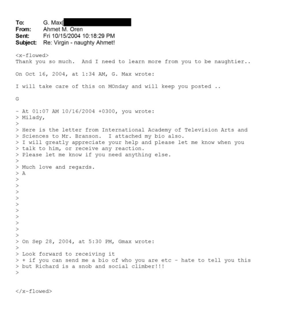 Serbestiyet’in çevirdiği yazışmalarda Dünyaca ünlü İngiliz yatırımcı, iş insanı ve Virgin Group’un kurucusu Richard Branson’un da ismi geçiyor.
