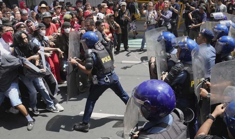 Manila’da binlerce işçi cumhurbaşkanlığı sarayı yakınında yürüdü. Polis barikat kurdu. Talepler arasında ücret artışı ve yerli istihdamın korunması vardı.