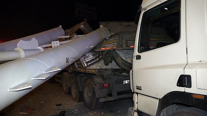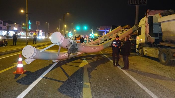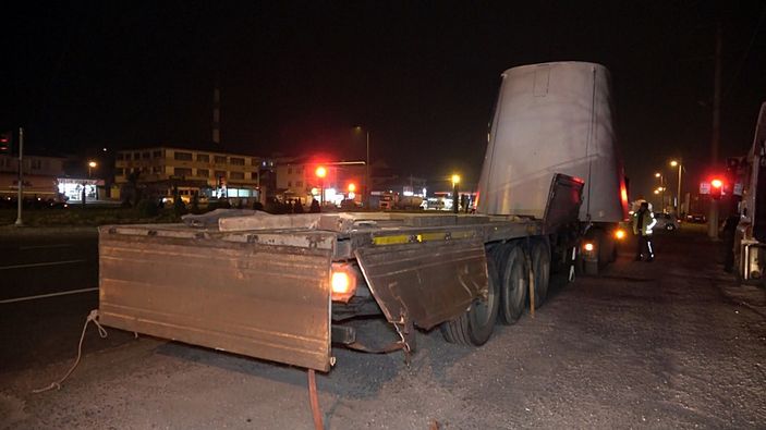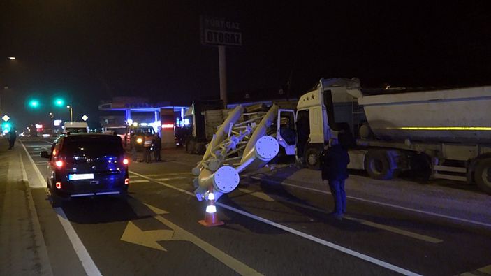 Tırın kasasında bulunan devasa çelik konstrüksiyonlar D-100 yoluna düştü.