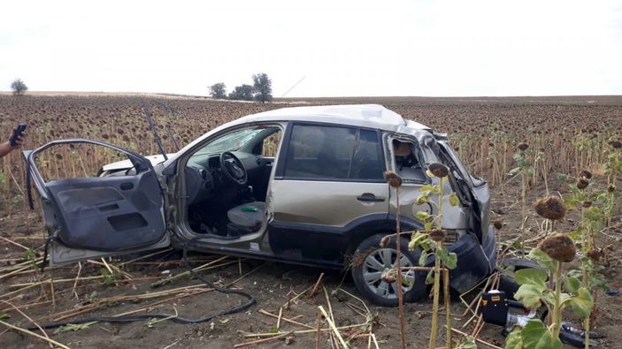 Edirne’de Keşan- İpsala karayolu üzerindeki Yeniceçiftlik köyü yakınlarında İpsala’dan, Keşan yönüne gitmekte olan Kemal Avcı yönetimindeki otomobil, sürücüsünün direksiyon kontrolünü yitirmesi sonucu yol kenarındaki ayçiçeği tarlasına girerek, takla attı.
