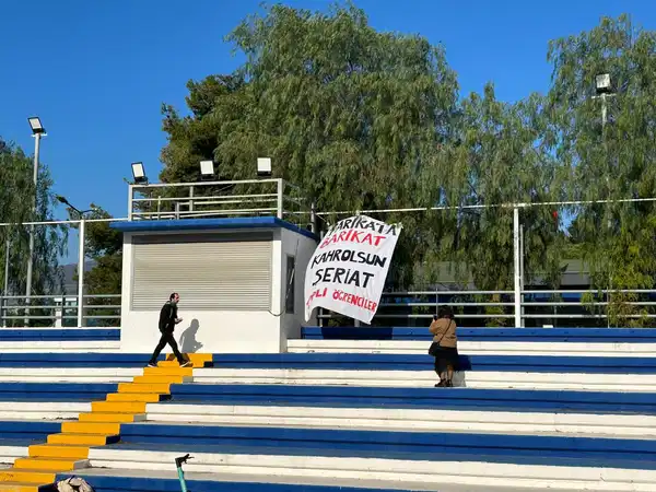 “Gençlik AKP’ye biat etmeyecek” ve “Kayyımlar gidecek biz kalacağız” gibi sloganlar atan öğrenciler yürüyüşün ardından “Yobaz kayyım gidecek! Üniversiteler özgürleşecek” ve “Tarikata barikat kahrolsun şeriat” yazan pankartlar asmak isteyen öğrencilere özel güvenlik müdahalede bulundu.
