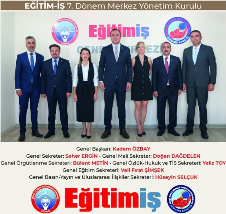 Eğitim-İş geçen haftasonu 7. Olağan Genel Kurulu’nu gerçekleştirdi. Genel kurulda merkez yönetim kurulunun (MYK) yeni üyeleri belli oldu. Dün ise MYK’de görev dağılımı yapıldı. Alınan MYK kararına göre Kadem Özbay yeniden Eğitim-İş Genel Başkanlığı görevine seçildi. Özbay’ın genel başkan seçildiği MYK’de diğer üyelerin görev dağılımı ise şu şekilde oldu:
