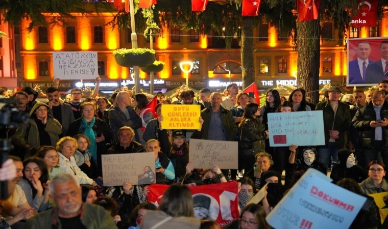 Atatürk posterleri ve Türk bayraklarının yanı sıra, “Bir cafe zincirini bile korudunuz ama bizi koruyamadınız“, “Çapulcuların kardeşleri büyüdü“, “ODTÜ günlerdir abluka altında” yazılı pankartlar taşıyanlar, “Hak, hukuk, adalet” sloganları atarak, Ekrem İmamoğlu ve arkadaşlarının serbest bırakılmasını istedi.
