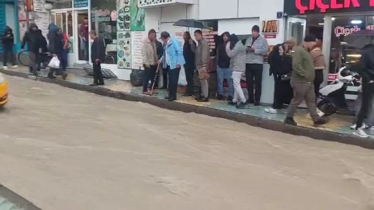 Yoğun yağış nedeniyle bazı cadde ve sokaklarda su birikintileri oluşurken, sürücüler yollarda temkinli seyretmeye çalıştı.