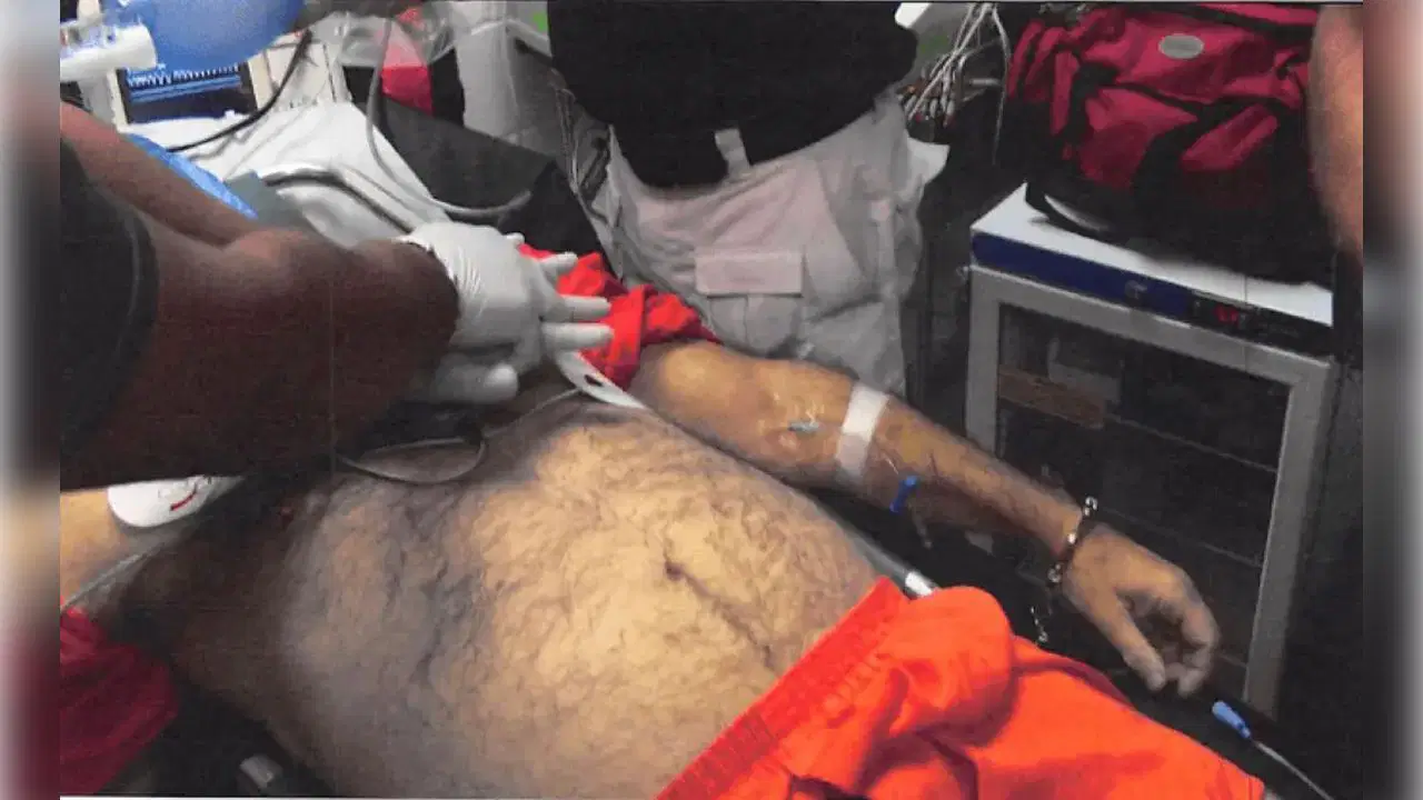 Adalet Bakanlığı kayıtlarında “EFTA00134598” numarasıyla yer alan raporda, Epstein’ın turuncu cezaevi kıyafetinin yırtıldığı, sağlık ekiplerinin kalp masajı (CPR) yaptığı anlara ait fotoğraflar bulunuyor. Görüntülerde Epstein’ın göğsüne yapıştırılmış elektrotlar, boyunluk, sedyeye bağlı oksijen tüpü ve serum hattı dikkat çekiyor.
