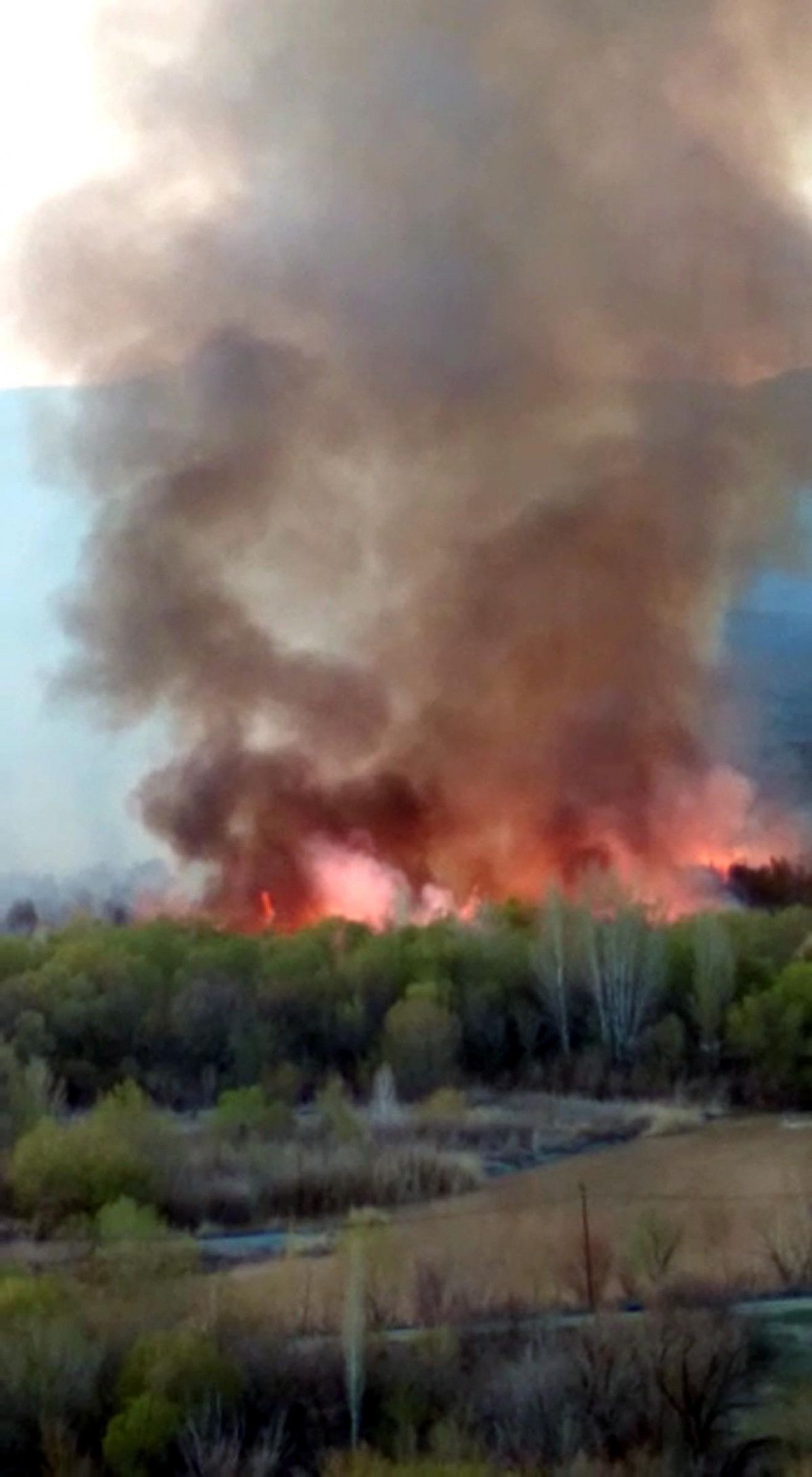 Kısa sürede yayılarak ormana sıçrayan alevlerin neden olduğu sıcaklık, sınırdaki Tuzluca ilçesinin Turabi köyünden de hissedildi.