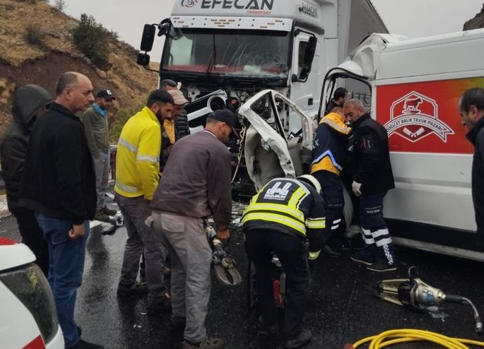 Erzincan’ın Tercan ilçesi Erzurum kara yolunda Ahmet Özdemir idaresindeki kamyonet, Adem Ö. kontrolündeki tır ile çarpıştı.