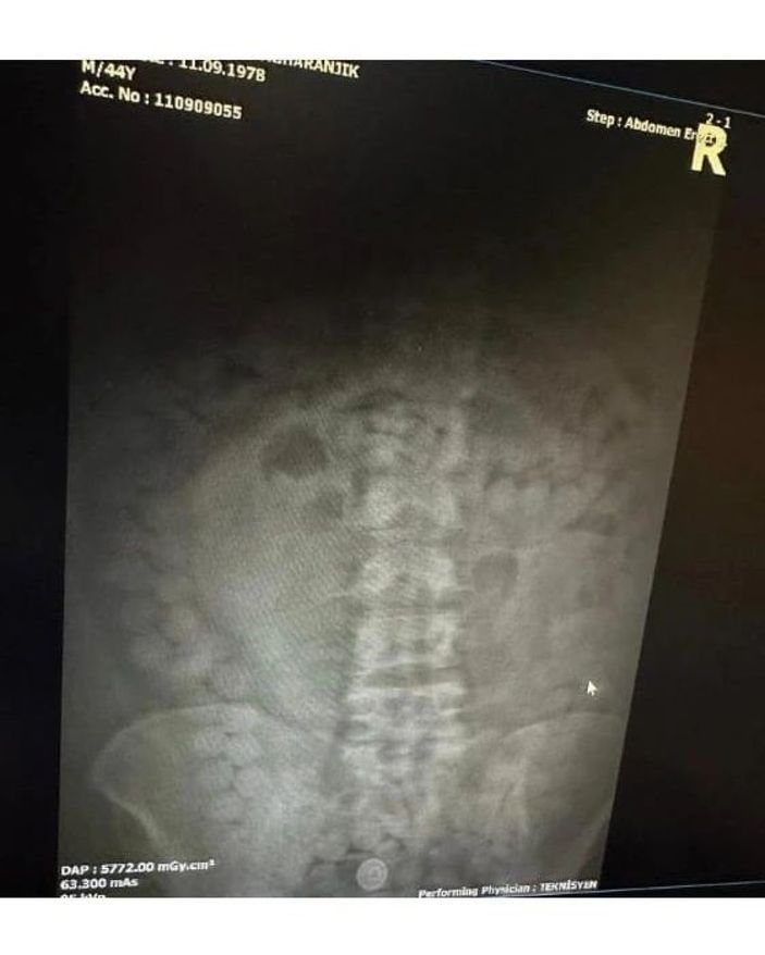 Bu kapsamda İran uyruklu M.Z. (45) isimli şahıstan şüphelenilmesi sonucu iç beden muayenesi kararına istinaden yapılan tomografi çekiminde mide ve bağırsak kısmında uyuşturucu olabileceği değerlendirilen çokça yabancı cismin olduğu görüldü.