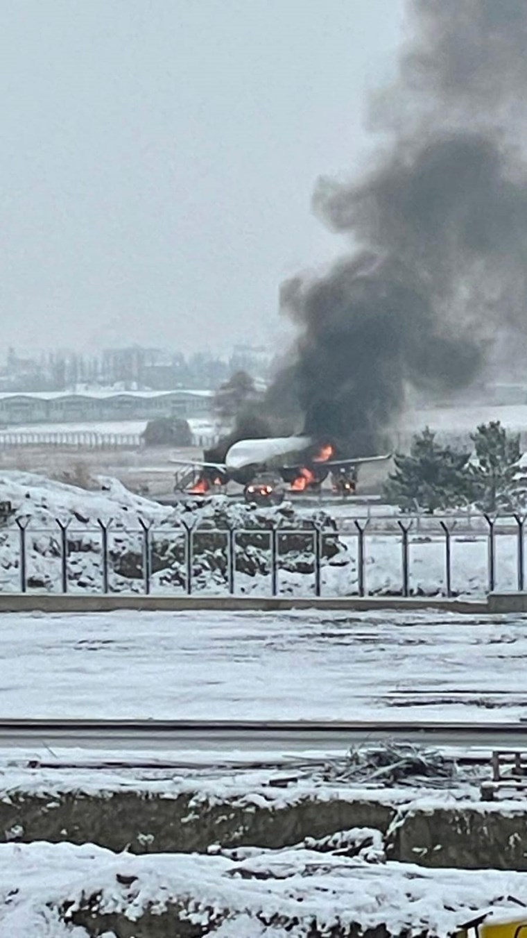 Ankara‘da yurttaşlar Esenboğa Havaalanı pistinde yanan bir uçak görünce paniğe kapıldı.