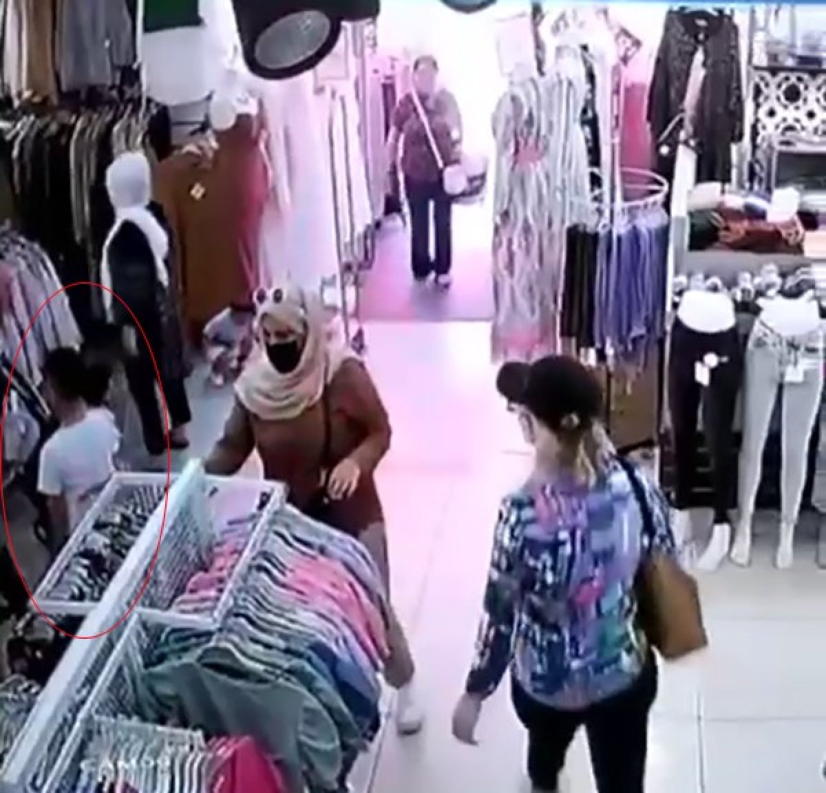 İddiaya göre bir şebeke tarafından hırsızlığa zorlanan küçük çocuk, giyim mağazalarındaki bebek arabalı kadınları kendine hedef seçti.