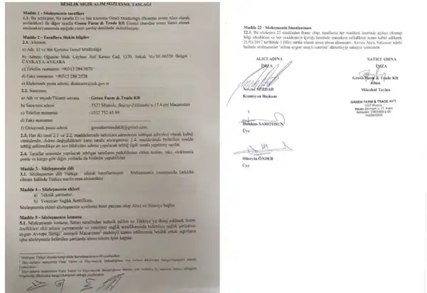 “Et ve Süt Kurumu ile Mücahit Taylan’ın ortağı olduğu yabancı şirket arasında 2.000 baş sığır ithalatı için imzalanmış resmî sözleşme. Ve bu sözleşmede satıcı firma adına Mücahit Taylan’ın imzası var. Evet, yanlış duymadınız: Kurumun başındaki adam, kendi kurumuyla ticaret yapan şirketin ortağı ve imza yetkilisi.