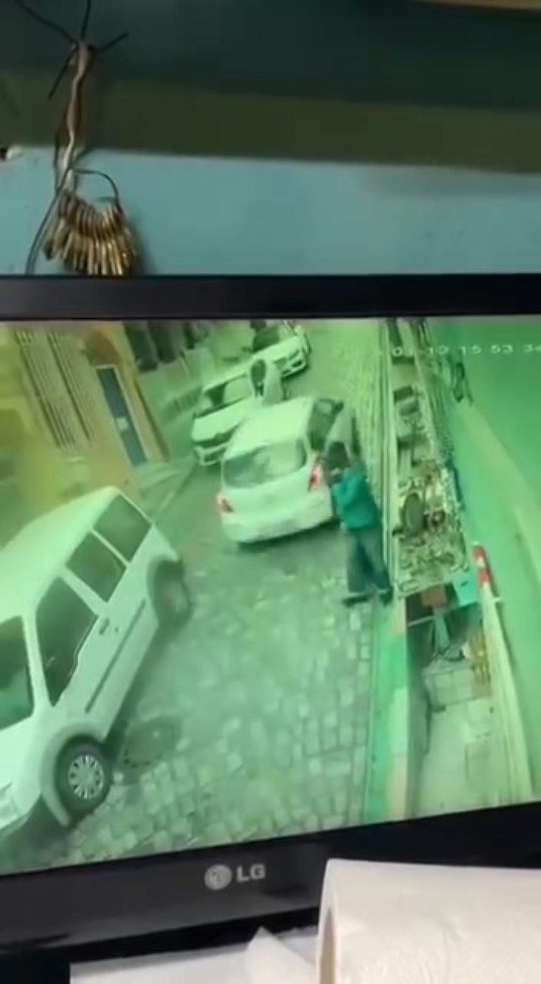 Yokuştan aşağı yürüyen 3 kadın, aracın üzerlerine geldiğini farkettikleri sırada kaçmaya başladı. Kadınlardan biri duvar dibine geçerek araçtan kaçmak istese de kayan otomobil kadına çarptıktan sonra durabildi.