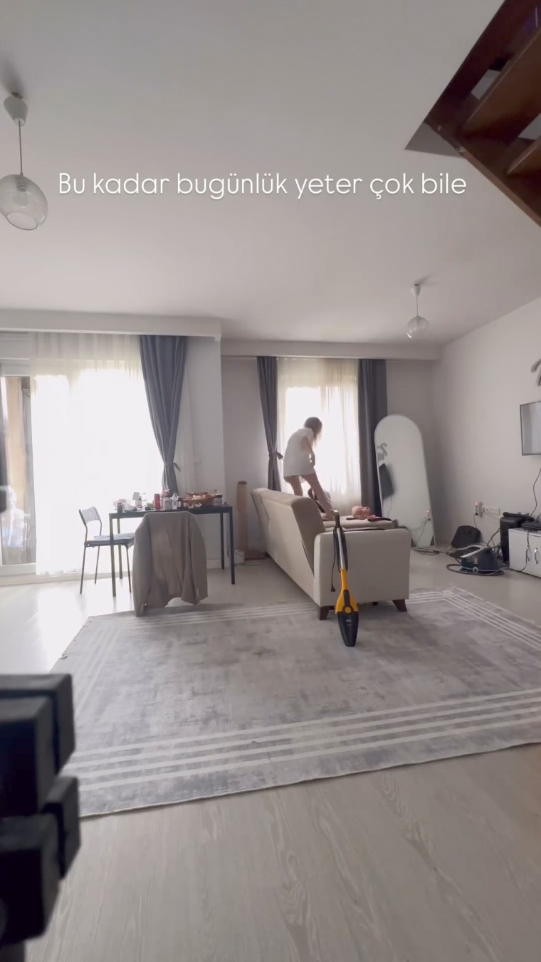 Görüntülerde Aykut’un evini temizlediği anlar yer aldı.