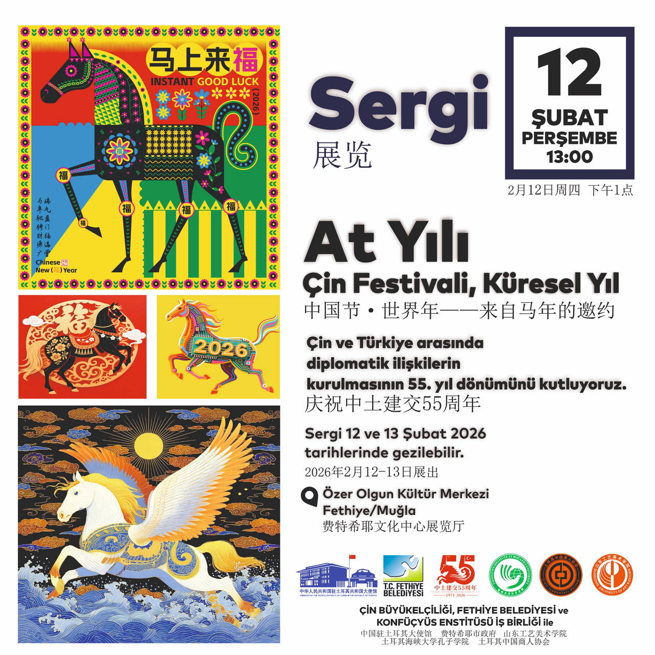 Özer Olgun Kültür Merkezi Sergi Salonu’nda, 12-13 Şubat tarihlerinde gezilebilecek resim sergisinde, Çinli sanatçıların “Çin At Yılı” temalı, 30 kadar eseri ziyaretçilerin beğenisine sunulacak.