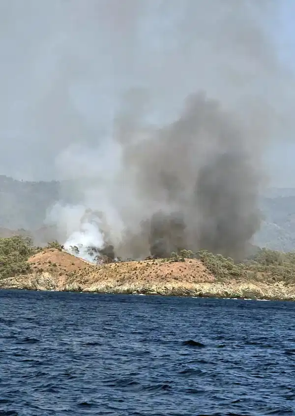 Muğla’nın Fethiye ilçesine bağlı Katrancı Koyu yakınlarında ormanlık alanda henüz belirlenemeyen bir nedenle yangın çıktı.