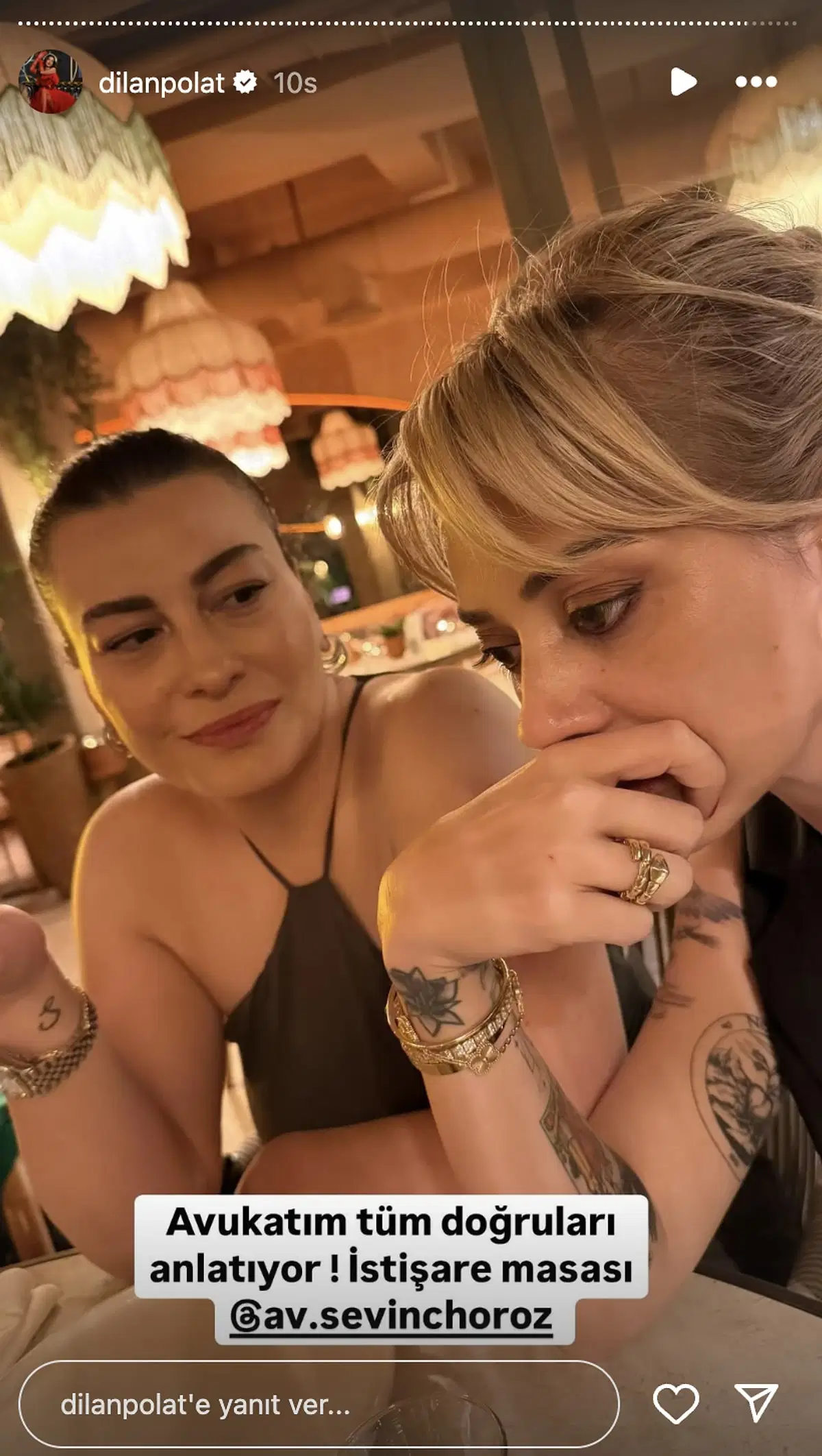 “Basın açıklamasıdır: Bugün Dilan Polat ile Sevim Alan tarafından bir araya getirildik. Sebebi ise Dilan ve eşinden; ailesinden; ve bazı fenomenlerden adıma HARAÇ istenmesi. Fenomen dosyası öyle bir yere gitti ki herkesin konuştuğu doğrunun yanlışa karıştığı suç örgütlerinin bir yerleri taradığı bir şeye dönüştü. Ben hak arayışında bulunurken doğrulardan ayrılmam. Eğer benim adımı kullanarak birilerine çökmeye çalışırsanız bunu da ortaya çıkarırım!!! Ben konuyu bizzat kendisinden ve avukatından dinleyerek olayları öğrendim. Bu kareyi paylaşmaktan ve her zamanki gibi doğruları paylaşmaktan geri durmuyorum. Ben de yaşadıklarımı net olarak anlattım bugün bu masada sadece doğrular konuşuldu.”