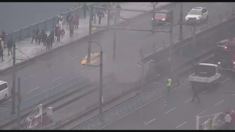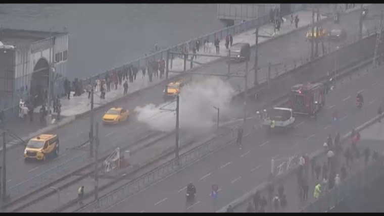 Galata Köprüsü üzerindeki tramvay raylarının elektrik kutularında henüz bilinmeyen bir sebeple yangın çıktı.