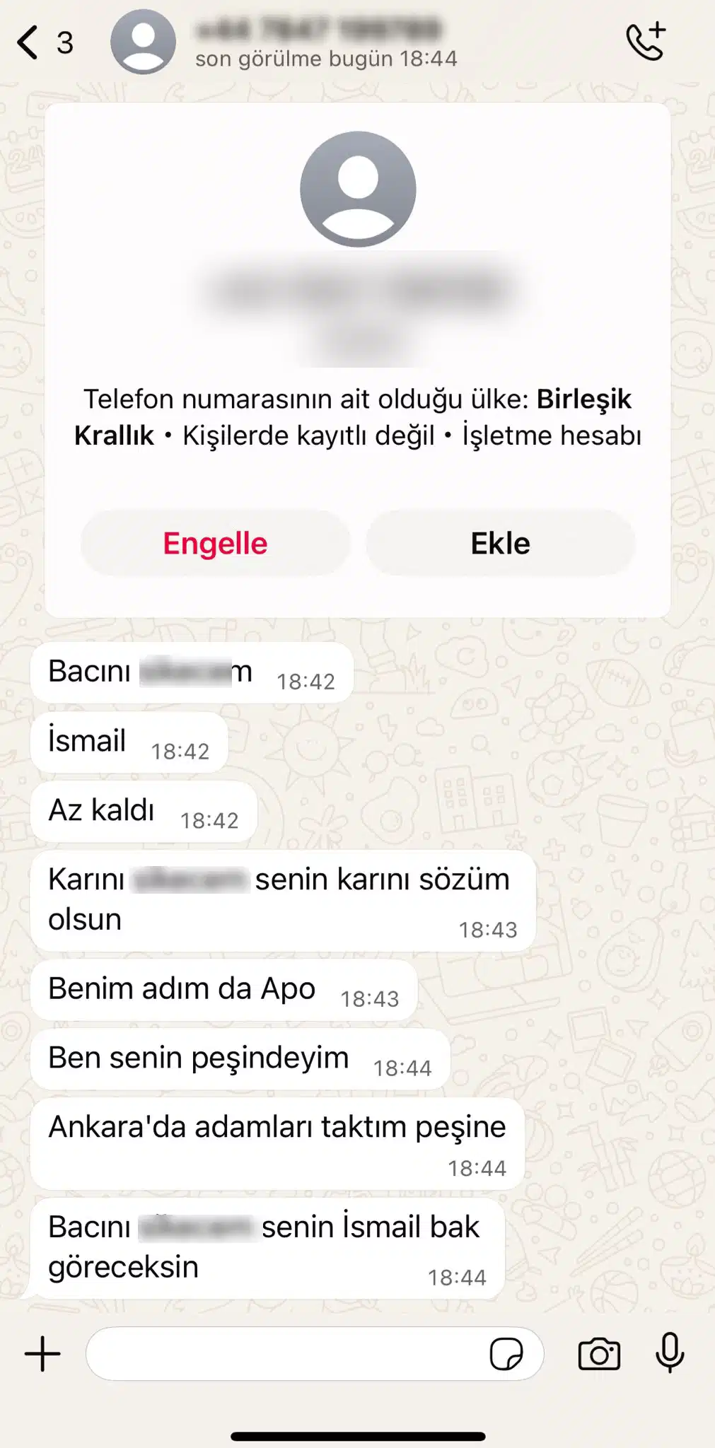 Peşime adam takmışlar. Mesajları aynen paylaşıyorum. Başıma bir şey gelirse sorumlusu bu çeteye dokunmayan Emniyet ve İçişleri Bakanlığı yetkilileridir.”