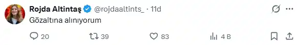 Gazeteci Rojda Altıntaş, X hesabından yaptığı paylaşım ile gözaltına alındığını duyurdu.