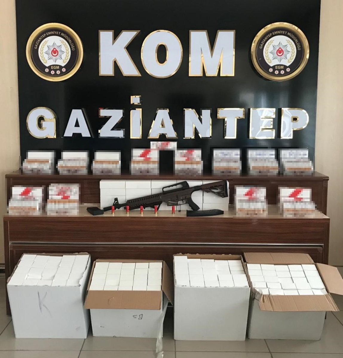 Operasyonda, 10 milyon 560 bin 400 adet boş makaron, 7 bin 300 adet dolu makaron, 2 kilogram nargile tütünü, 1 adet uzun namlulu silah ele geçirildi.