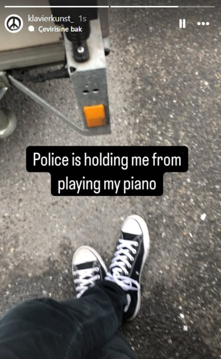 Martello sosyal medya hesabından yaptığı paylaşımda “Polis beni piyano çalmaktan alıkoyuyor” ifadelerini kullandı.