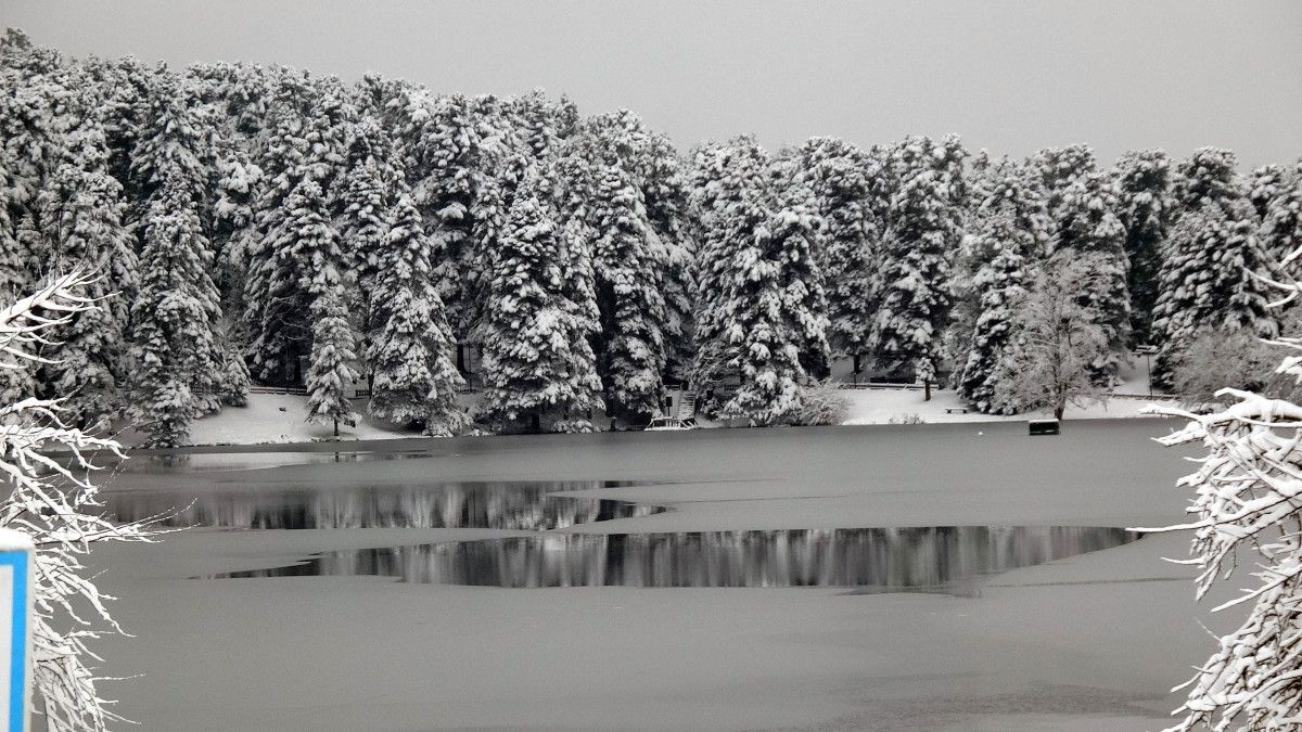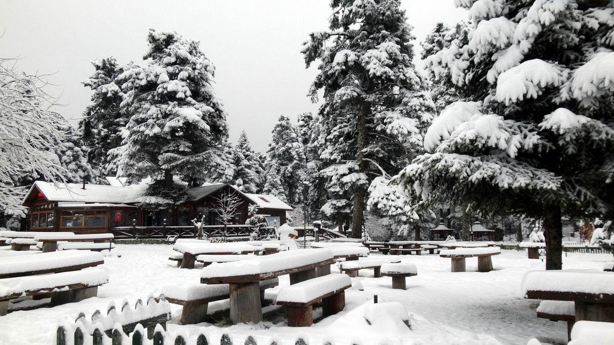 Tabiat parkını çevreleyen karla kaplı çam ormanları güzel manzaralarıyla kendine hayran bırakıyor.
