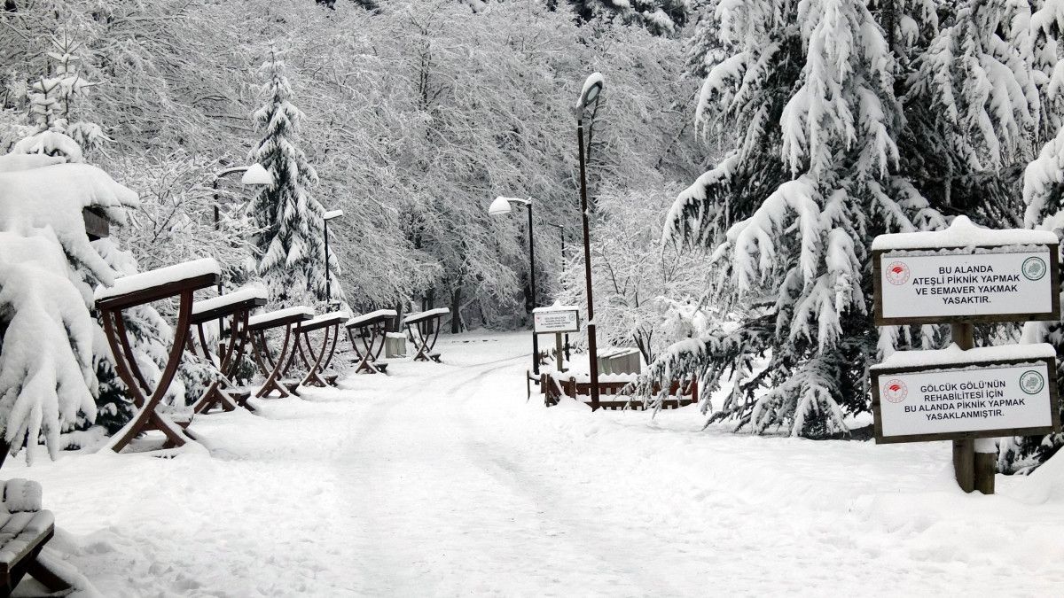Kent merkezine 13 kilometre uzaklıkta olan Tabiat Parkı, 2 gündür devam eden yoğun kar yağışının etkisini sürmeye devam ediyor.