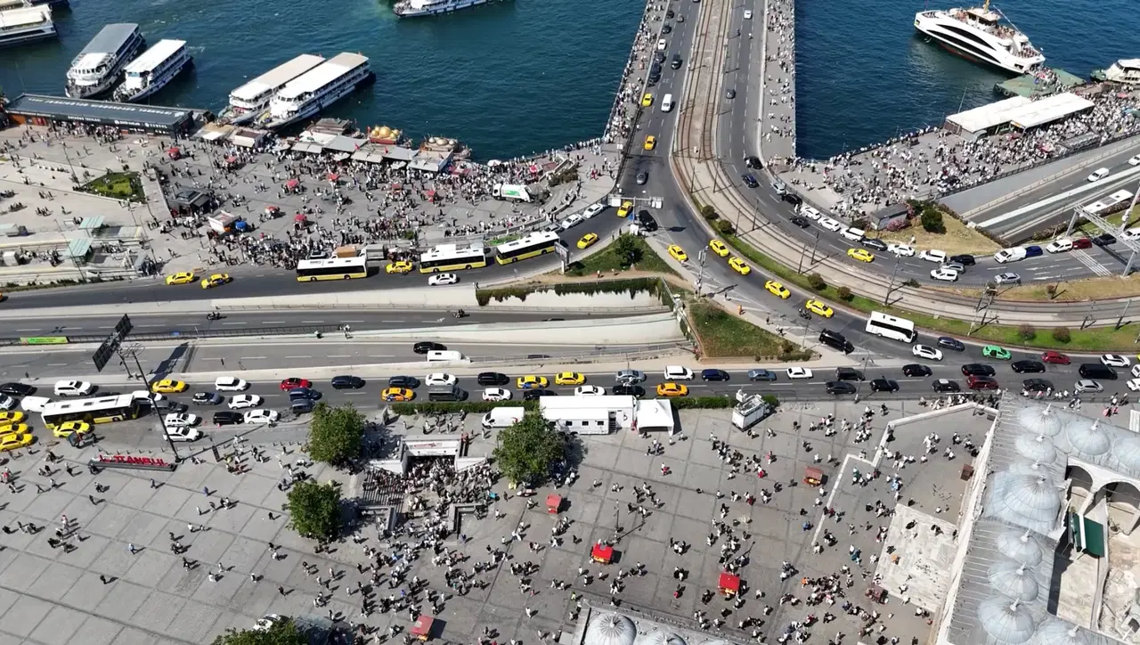 Güneşli havayı fırsat bildiler… Eminönü ve Galata Köprüsü’ndeki bayram hareketliliği havadan görüntülendi