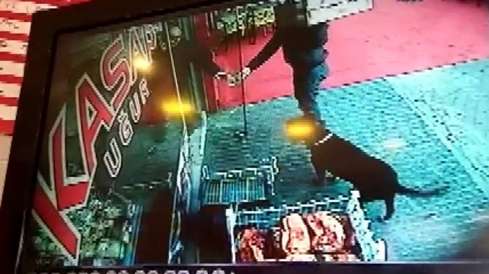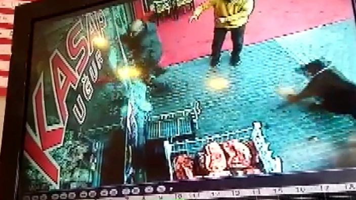 Dükkan sahibi Uğur Culfa da, köpeğin kovaladığı kişiye hareket çekerek şaka yaptı. Bunun üzerine korkup can havliyle kendini yeniden kasap dükkanına atmaya çalışan kişi, cam kapıya çarparak parçaladı.