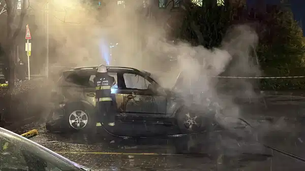 Hızla büyüyen alevler, park halindeki diğer araca da sıçradı. Görenlerin ihbarıyla olay yerine itfaiye ve polis ekipleri sevk edildi.
