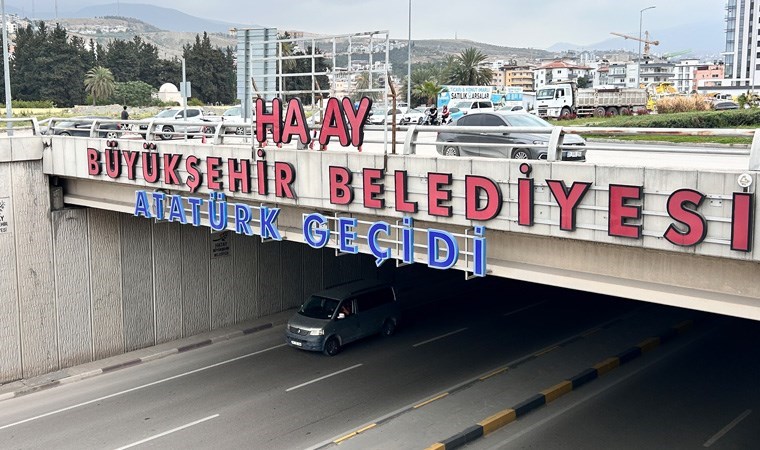 Geçitlerin giriş ve çıkışlarında yer alan 6 tabeladaki Hatay Büyükşehir Belediyesi ifadesinin ‘T’ harflerinin yokluğu merak uyandırmıştı.