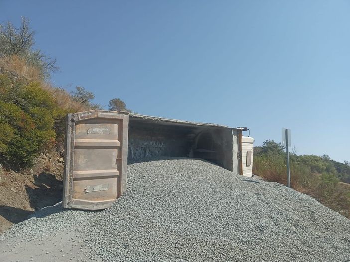 ilçesi Gülderen-Karaksı yolunda hafriyat taşıyan kamyon, sürücüsünün direksiyon hakimiyetini kaybetmesi sonucu yan yatarak devrildi.