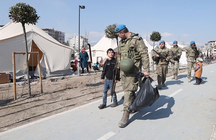 Askerimiz yeri geldi çadır kurdu, yeri geldi arama ve kurtarma çalışmalarına katıldı. Zelzele bölgelerinin emniyet ve asayişini de Mehmetçik sağlıyor.