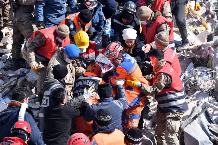 Ekipler, öğretmen olduğu belirtilen 26 yaşındaki bayanı enkazdan 202 saat sonra kurtardı.