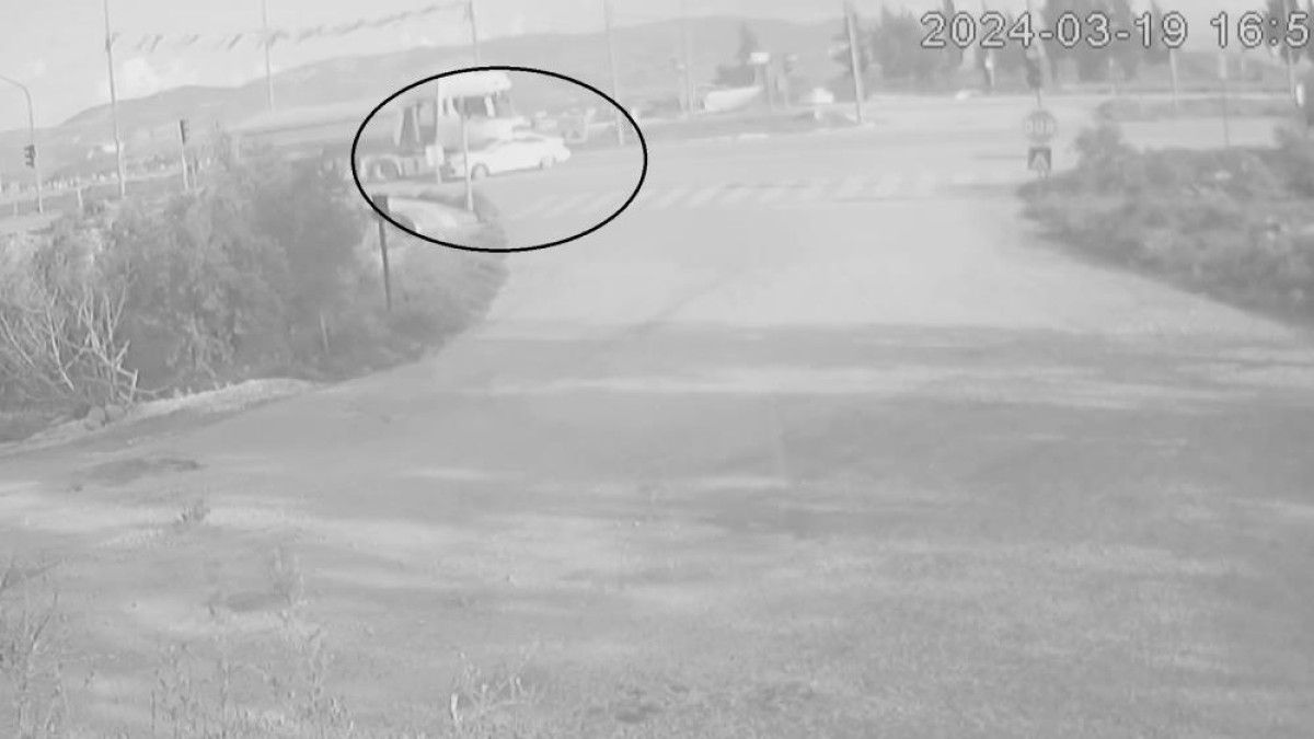 Görüntülerde; tır sürücüsünün ışık ihlali sonrası ani freninin muhtemel bir faciayı önlediği görüldü.