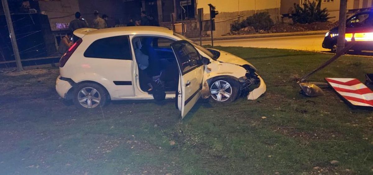 Sürücüsünün direksiyon hakimiyetini kaybetmesiyle otomobil, kavşağa uçarak girdi.
