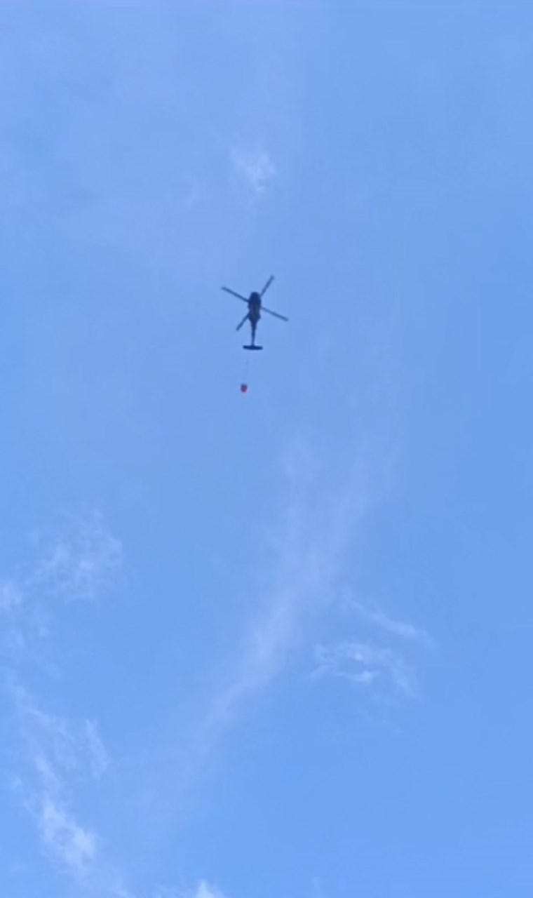 2 helikopterin havadan da destek verdiği söndürme çalışmaları sürüyor.