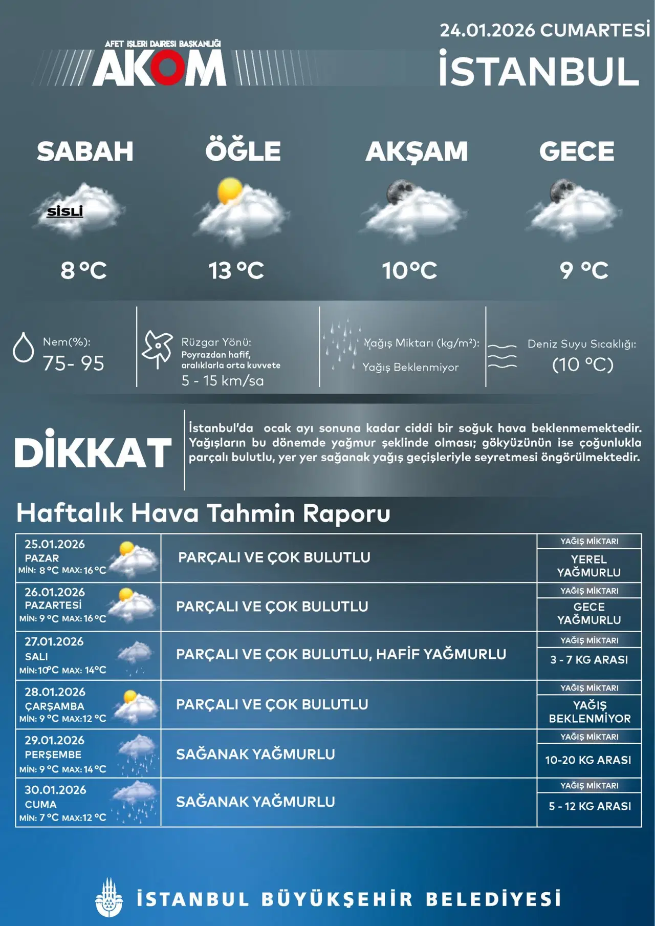 Perşembe Alarmı: 29 Ocak Perşembe günü şehre kuvvetli sağanak yağış (10-20 kg) geliyor.